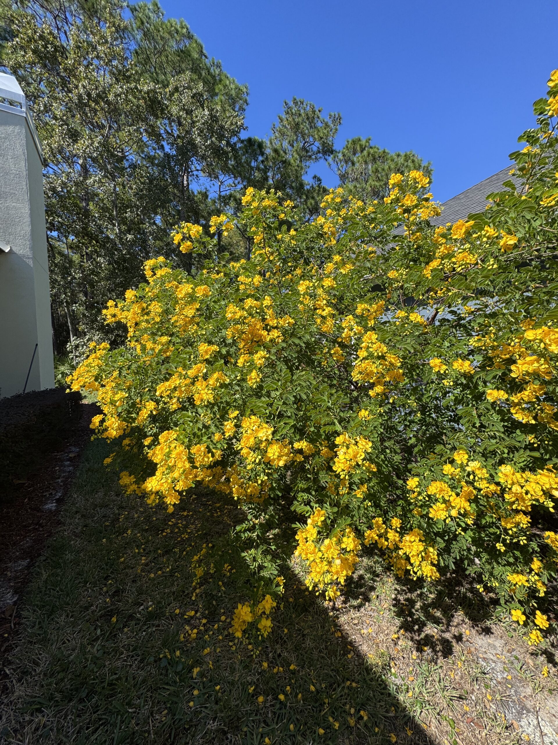 This is just one of my Cassia trees, which has grown taller than this side of my house! Where I live in Jacksonville is growing zone 9b.